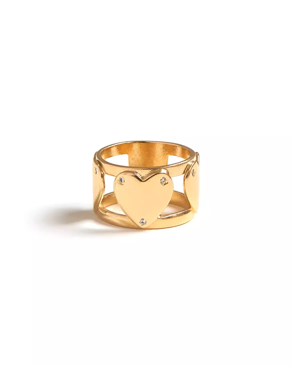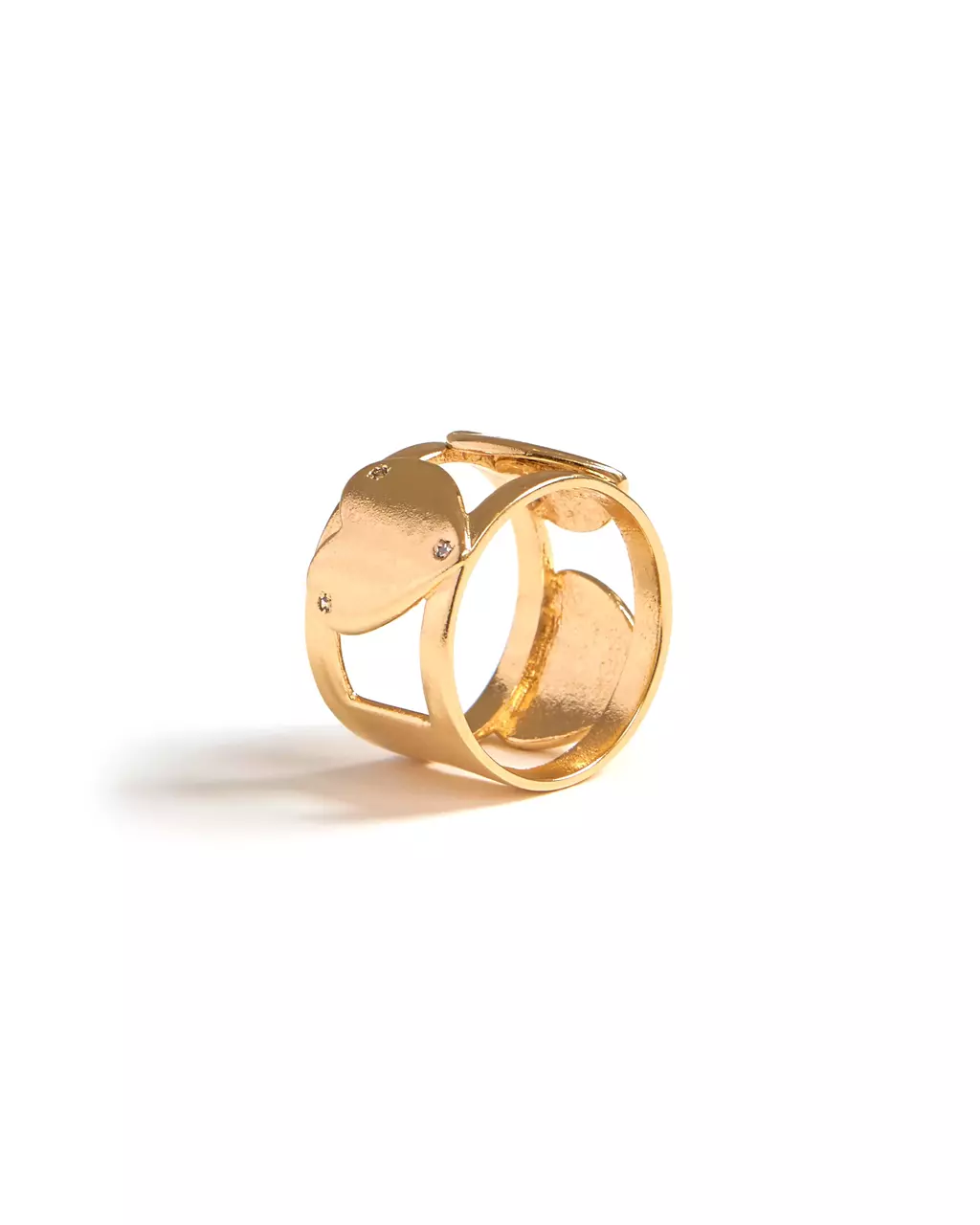 O Anel Dourado com Zircônia é a definição de sofisticação em design moderno. Seu aro largo e imponente traz personalidade, enquanto os detalhes em zircônias cravadas adicionam brilho sutil e refinado.